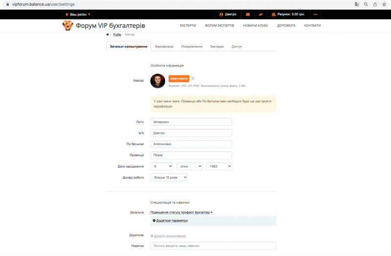 — Аватар (ваша фотографія, яка буде відображатися в системі)